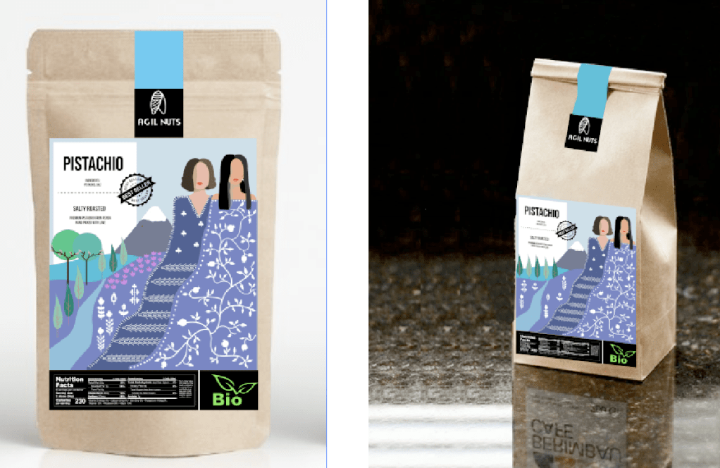After exploring various options, we settled on “doy pack” bags. These bags are not only made from recycled materials but are also food-grade and easy to seal, making them an ideal choice for our products.